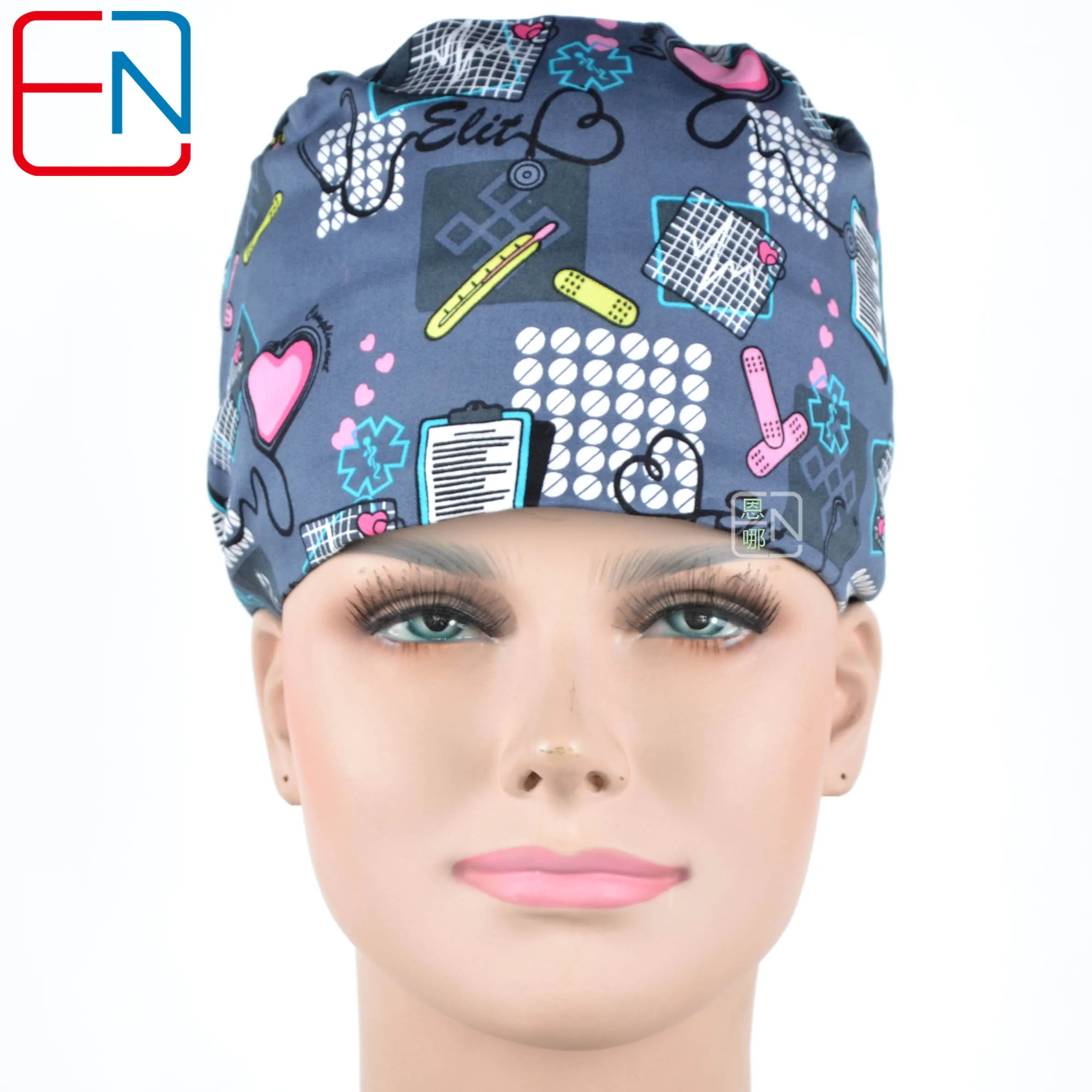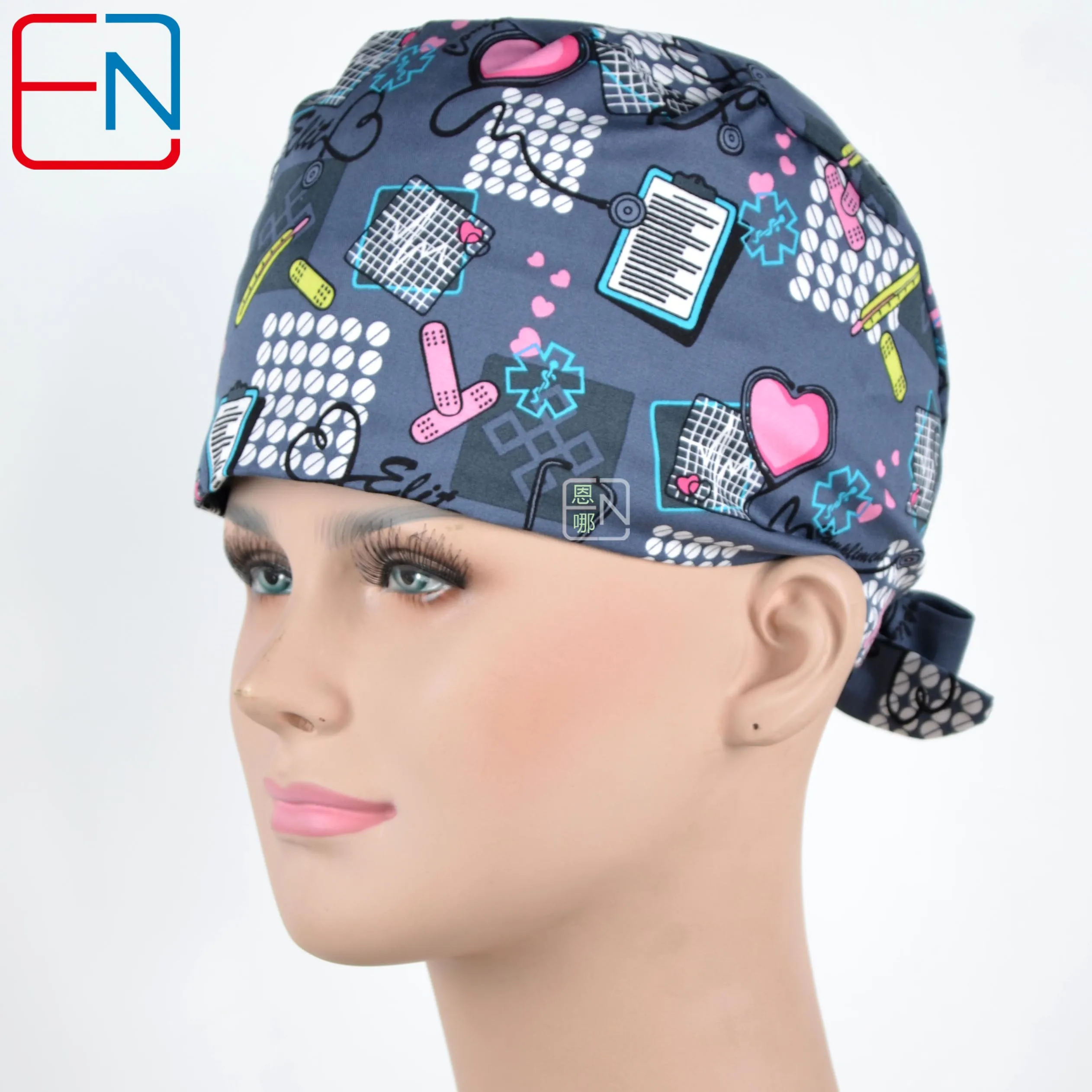 Hennar Hospital Doctor Surgical Cap For Men Women Gray Printing Adjustable Cotton Nurse Cap Unisex Cap Medical Accessories