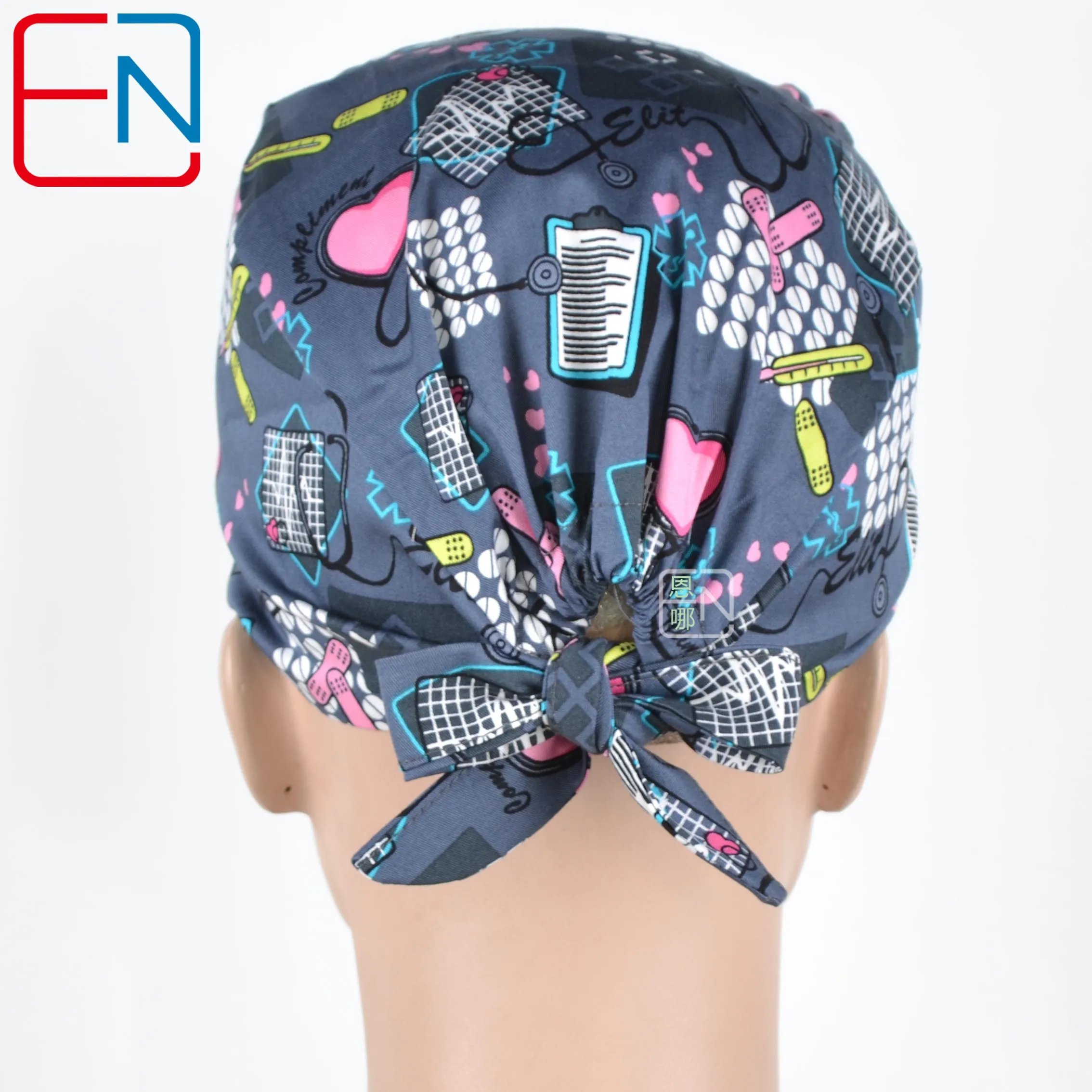 Hennar Women Print Surgical Caps Mask 100% Cotton Medical Caps Adjustable Dentists Surgical Hats .
