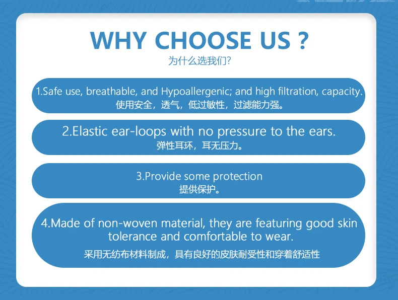 4. Perfect design, when you wear it , it fits seamlessly into your face. Elastic ear loop is easy to wear and no pressure to the ears.