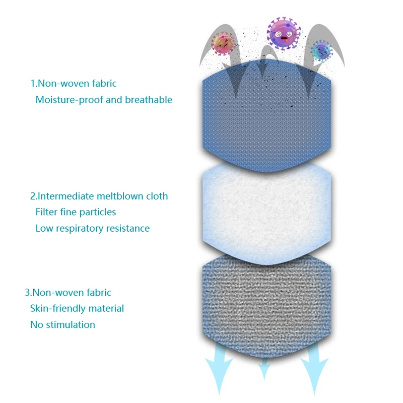 3. Special 3 ply non-woven design, provides protections against dust, automobile exhaust, pollen, etc.