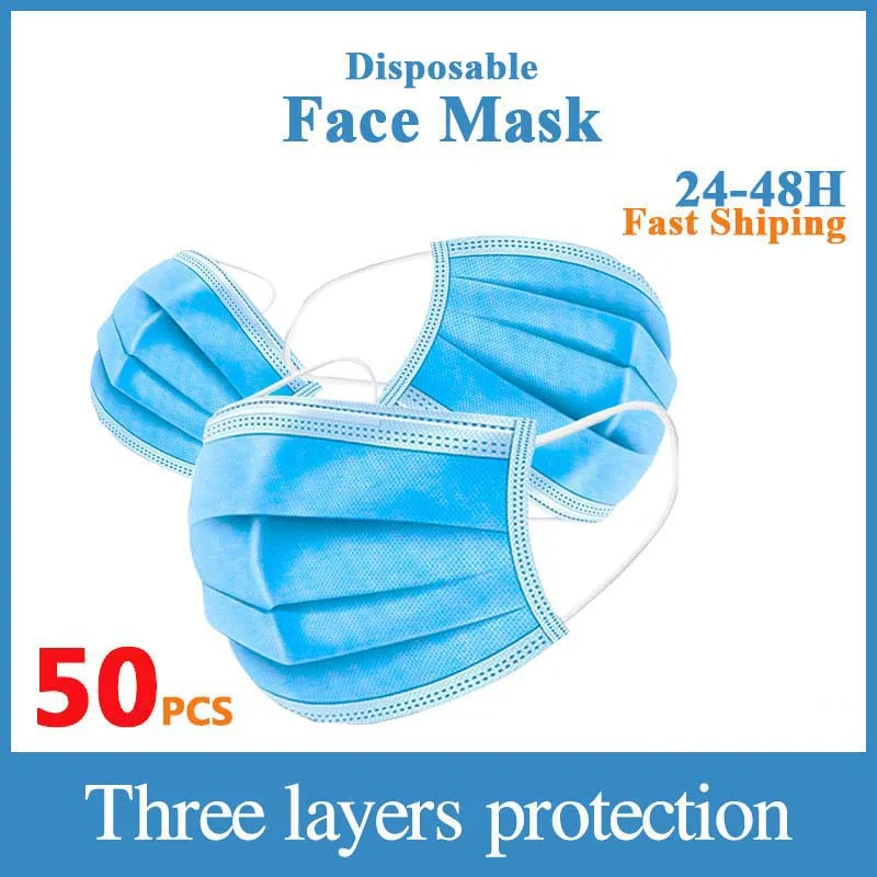 Mask mask mouth mask dust Disposable Face Mask dust mask disposable Protective mask 3 ply face mask face dust mask 50pcs