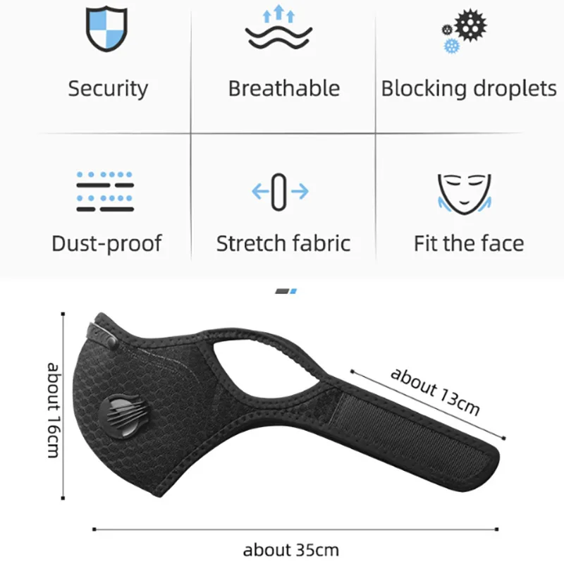 CoolChange Cycling Face Mask Activated Carbon With Filter PM2.5 Anti-Pollution Bike Sport Protection Dust Mask Anti-droplet
