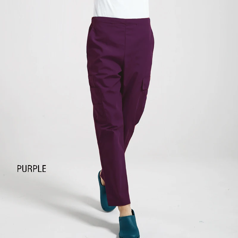 Multi function Nurse Uniform Bottoms Cotton More Pockets Work Trouser Dental Medical Scrub Pants SPA Nursing Scrub Pants