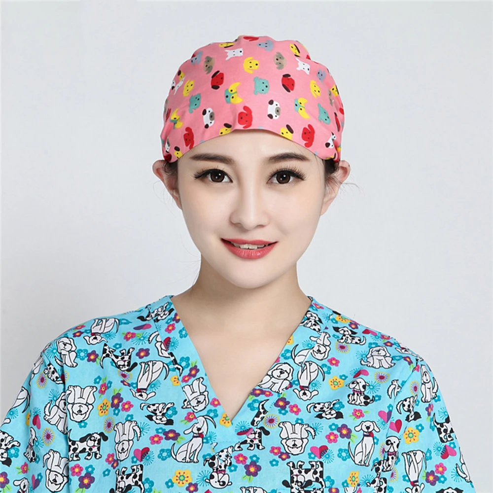 VIAOLI Unisex Medical scrub Cap nursing nurse Hat Cartoon Printing Pet hospital doctor hat Dental Clinic Medical surgical cap