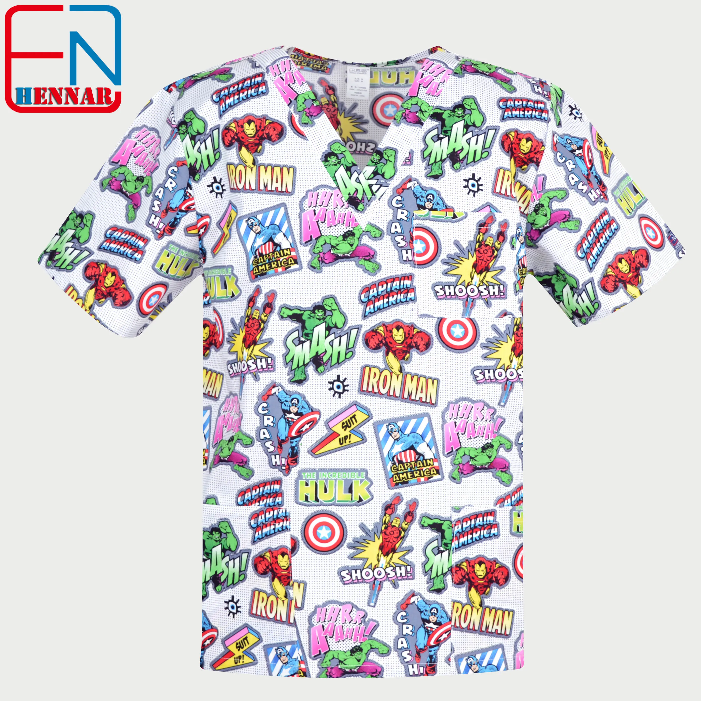 Big sale Hennar Women Scrub Top With V-Neck 100% Cotton Print Surgical Medical Uniforms Hospital Nurse Scrub Tops For Women