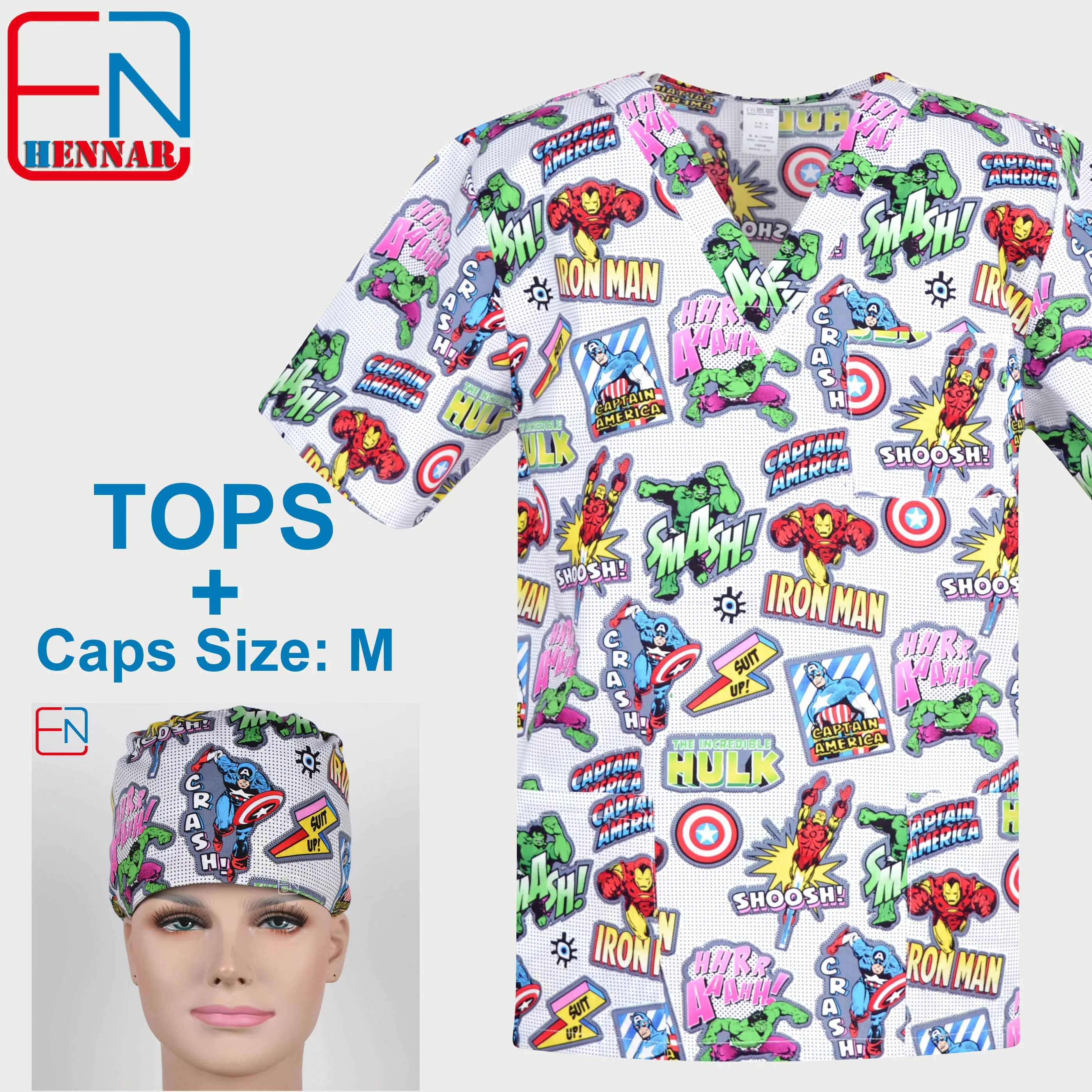 1910 NEW Hennar Women Scrub Top With V-Neck 100% Cotton Print Surgical Medical Uniforms Hospital Nurse Scrub Tops For Women