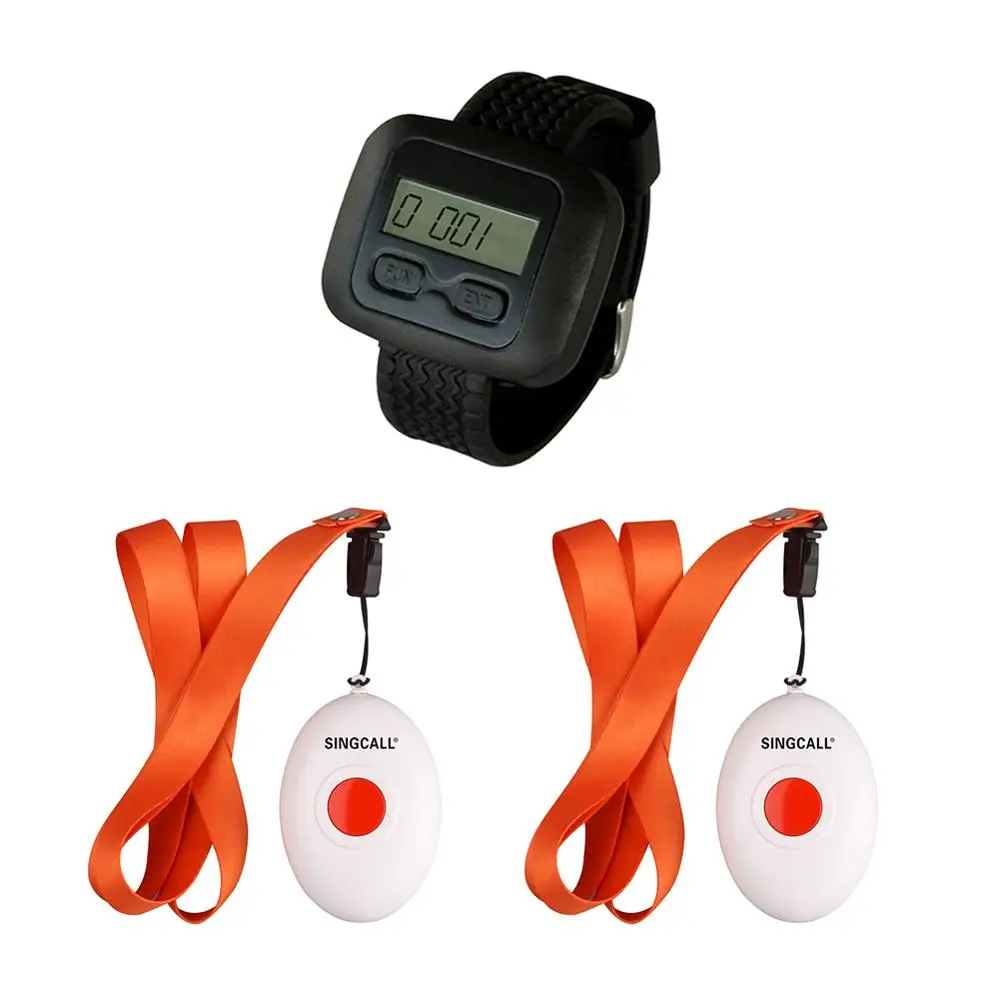 | SINGCALL Wireless nurse call system for Old, Disabled people, for hospital medical call button,1 Watch Receiver and 2 Bells |
