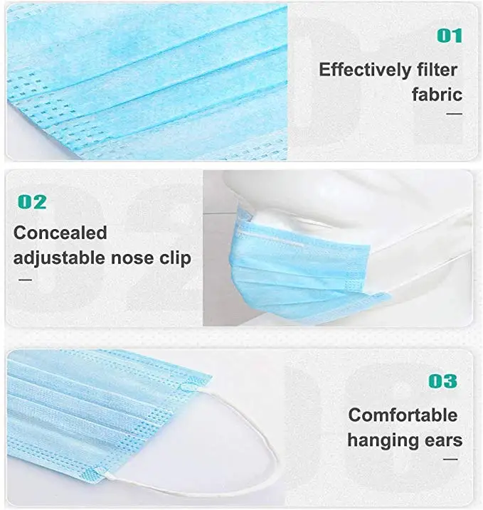 Description: The 3 ply non-woven disposable surgical mask is made of 3 ply non-woven material, it is healthy and safe for you to use. Breathable material and cute patterns, which makes it useful and fashionable. Special 3 ply non-woven design, provides some protections against dust, automobile exhaust, pollen, etc. Elastic ear loop, easy to wear and no pressure to the ears. Perfect for medical, nail salon or any other areas where protection might be required, such as hospital, airplane, etc. Features: 1. Made of environmental friendly material, moisture-proof, non-toxic, non-irritating, soft and comfortable. 2. Breathable material and cute patterns, which makes it useful and fashionable. 3. Special 3 ply non-woven design, provides protections against dust, automobile exhaust, pollen, etc. 4. Perfect design, when you wear it , it fits seamlessly into your face. Elastic ear loop is easy to wear and no pressure to the ears. 5. Perfect for medical, nail salon or any other areas where protection might be required, such as hospital, airplane, etc. Disposable Mask Anti Pollution Mask Unisex Protection Fabric Dust Mouth Mask MEDICAL GRADE QUALITY Safe protection against viruses, allergies, contaminants, bacteria, dust etc. EACH BOX CONTAINS 50 PCS Feature: l 100% brand new and high quality. l Protection: Three layers of purifying dust, toxic gases in the air,and skin-friendly filter cloth,giving you multiple protections,protects against dust, allergens and contaminants. l Color: Blue l Packing: boxed l Type: Disposable mask l Quality: Our masks are made of soft, high-quality cotton and individually packaged and sealed to ensure the highest standards Please be kindly noted: · Listed product is produced and distributed abroad and subject to the laws of its country of origin. · You may purchase the products for personal use only.