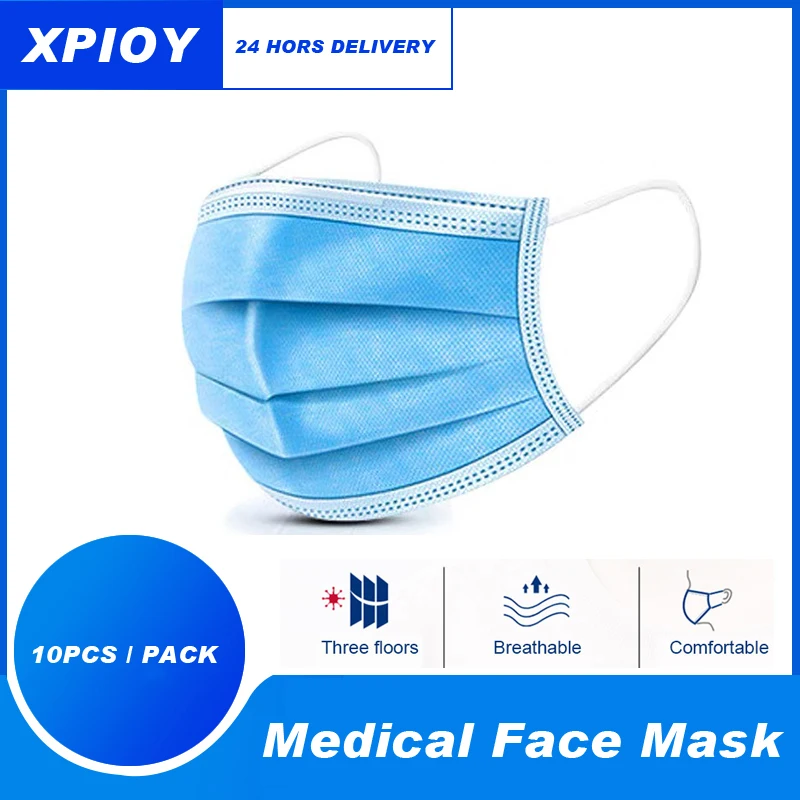 10pcs Medical Masks Bacteria Proof Surgical Masks 3 Layer Filter Disposable Masks Anti-dust Mouth Nose Proof Earhook Face Masks