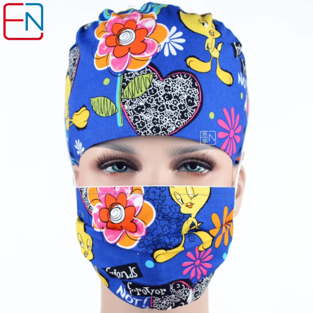 Unisex Surgical Caps Flower Pattern Printed Adjustable Surgical Hats Doctor Nurse Dentist Caps Elasticity Hats Work Wear