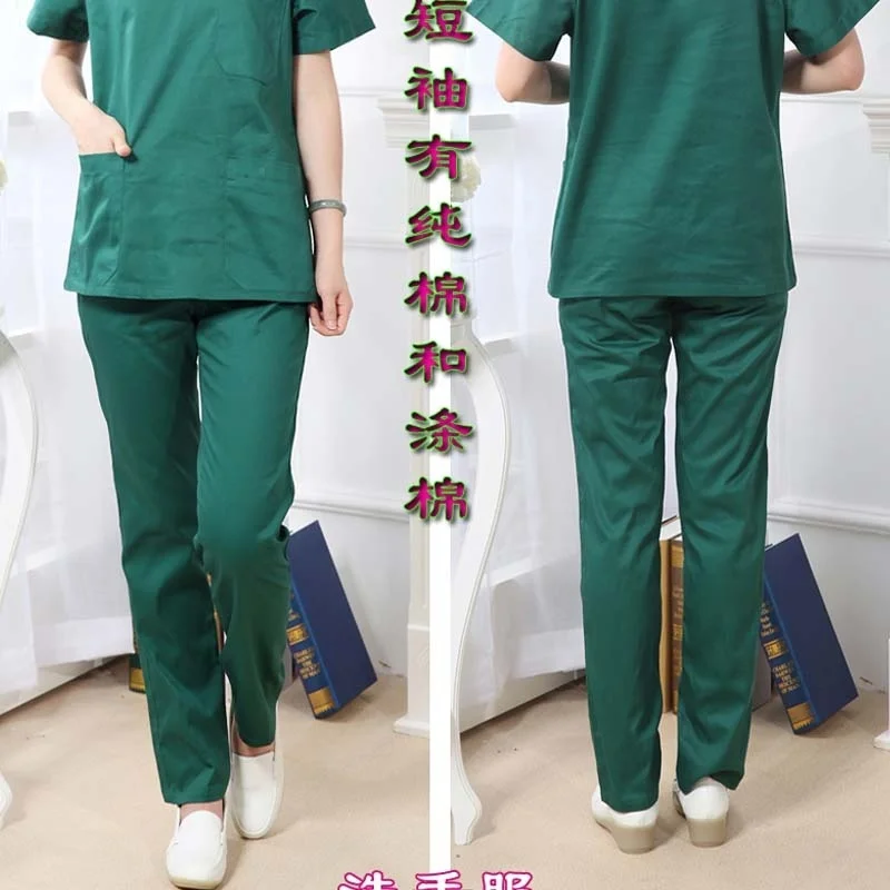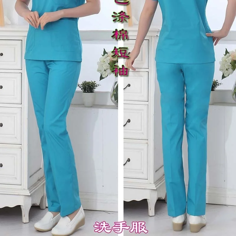 Plug Size S-4XL Medical Uniforms Short Sleeve Pure Cotton Scrubs Women V Neck Top Doctor Nurse Pants Dentist Hospital Workwear