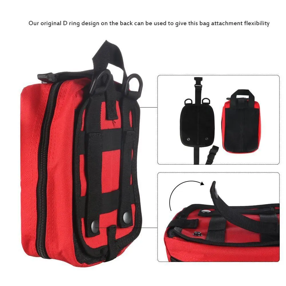 4.FLEXIBILITY: Our original D ring design on the back can be used to give this Individual first-aid kit bag attachment flexibility. Use them to attach a shoulder strap, attach the pouch in your car or truck, and is perfect for a JEEP rollbar and other recreational vehicles.