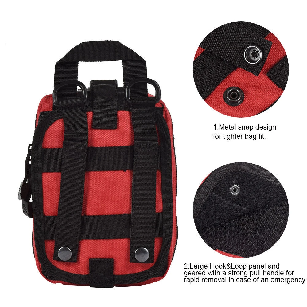 2.High qualitly : Durable MOLLE straps with strong snaps allows you to attach this medical pouch to any MOLLE compatible gear( to be worn on belt, vest or pack).
