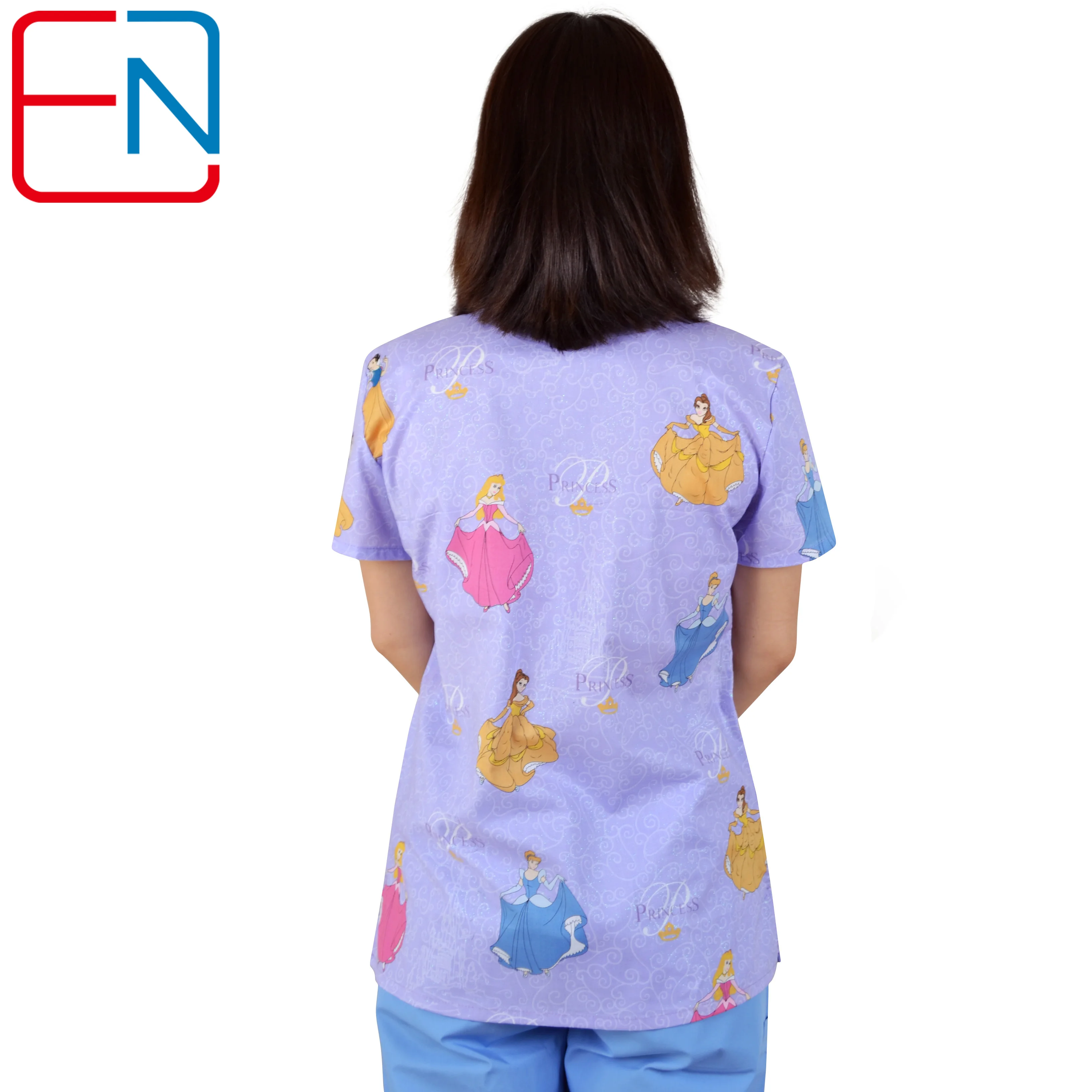 Brand heart neck, medical scrub tops surgical scrubs,scrub uniform 100% print cotton medical uniforms engineered print piece cut