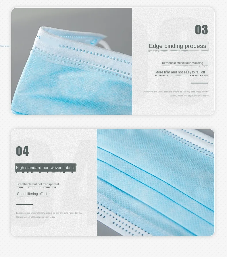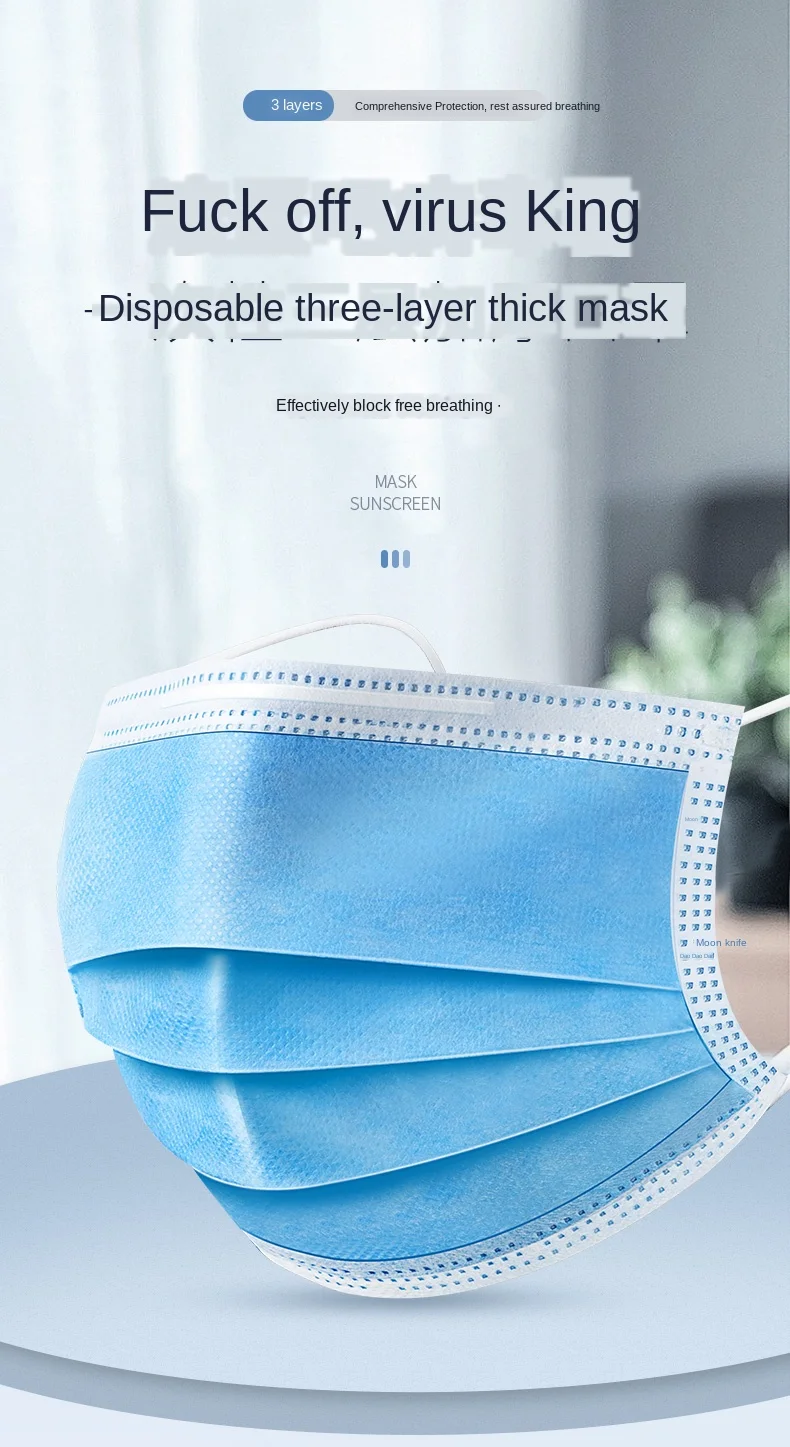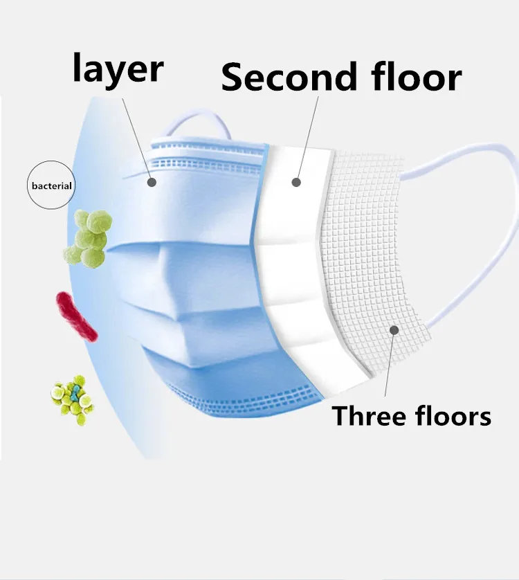 50PCS Disposable Anti Dust Mask Daily Protective Mask Anti Fog Dust-proof Non-woven Melt Blown Three-layer Masks Mouth Mask Blue