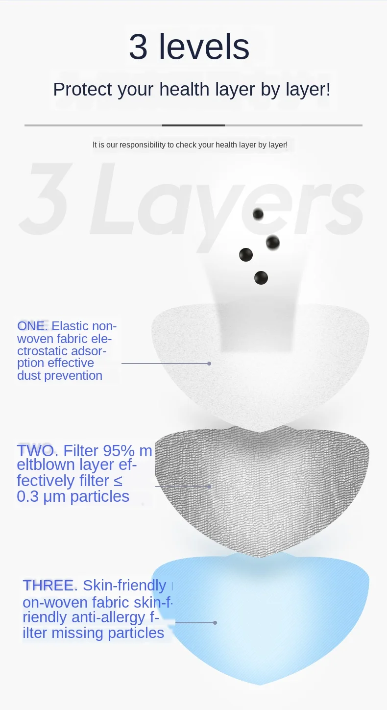 50pcs Disposable Mask Anti-droplet Dustproof Haze Breathable Adult Children Three Layer Meltblown Fabric 50-Protective Masks