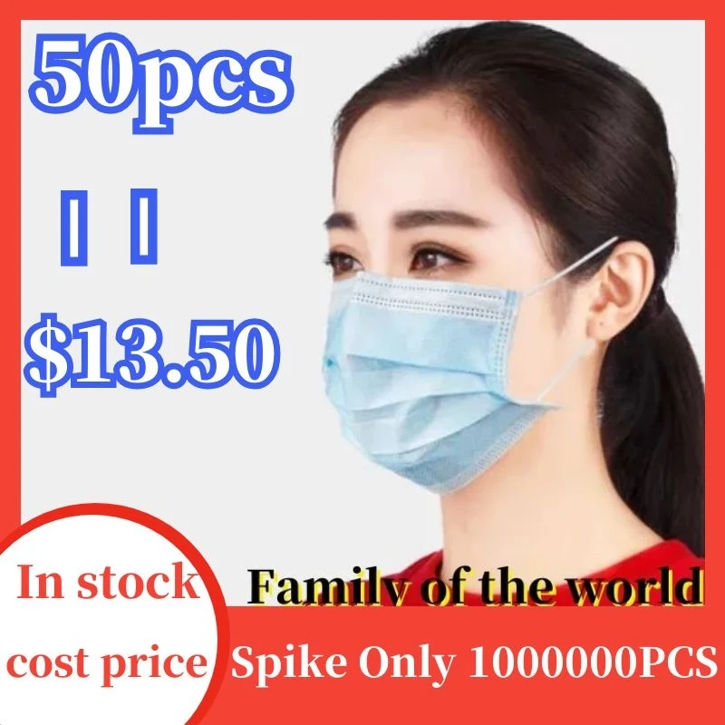 | 50PCS Stock Women Face Mouth Mask For Men Disposable Protect 3 Layers Filter Dustproof Earloop Non Woven Protective Masks Anti |