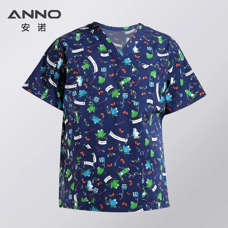 ANNO Printed Medical Clothes Round Neck Nurse Uniforms for Women Men Beauty Salon Dental SPA Work Wear Medical Equipment