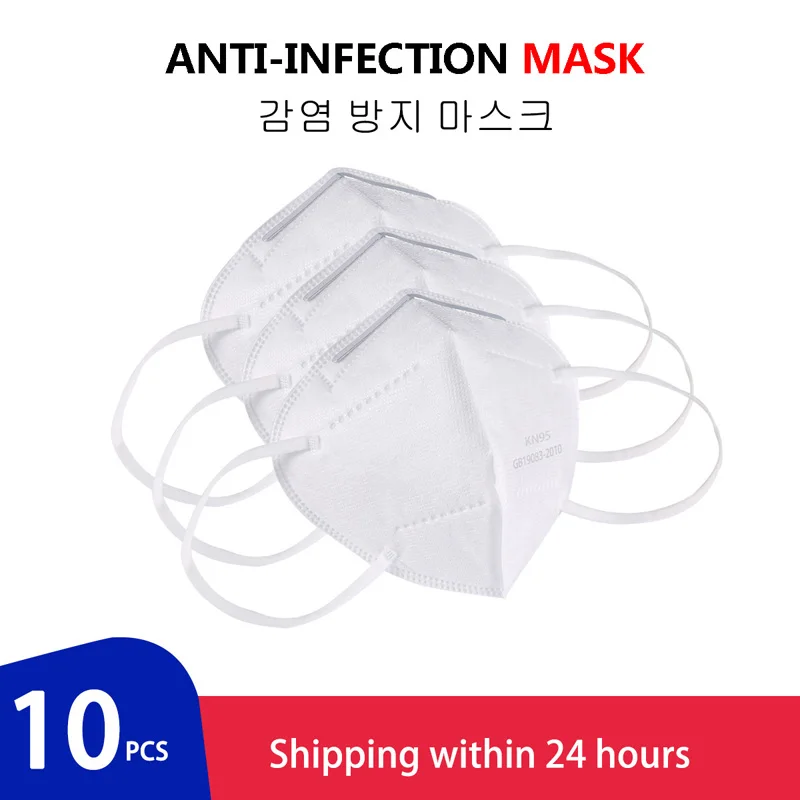 10pcs Medical N95 Mask Anti Air Dust Face Mask Mouth 95% Filtration Windproof Proof Flu Masks Protective Respirator Reusable