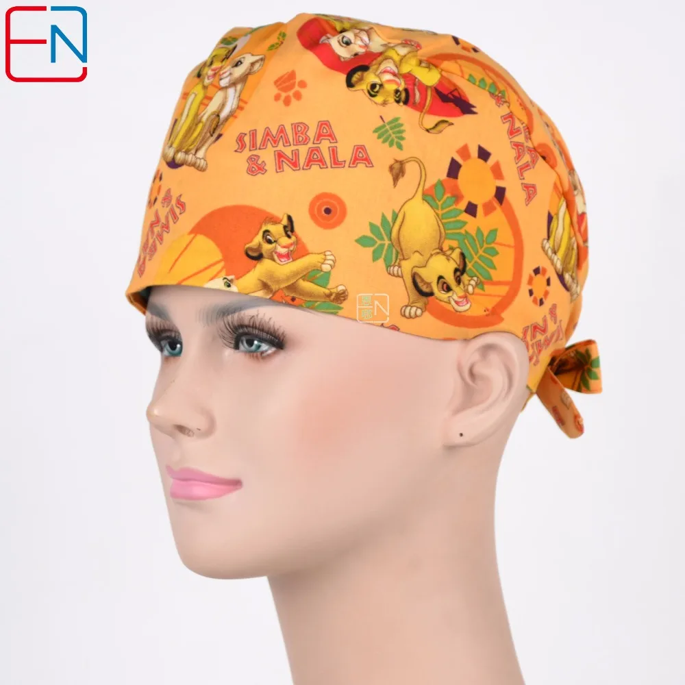 Hennar Surgical Medical Caps Mens Pure Adjustable Scrub Caps Cotton Doctor Nurse Pattern Printed Medical Uniforms Surgical Caps