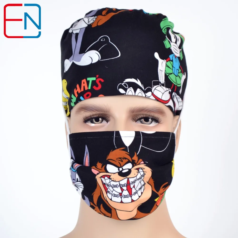 Check This Video Reviews Get Hennar Medical Scrubs Caps Masks Doctors Nurses Black Printed Surgery Hats Comfortable Soft 10
