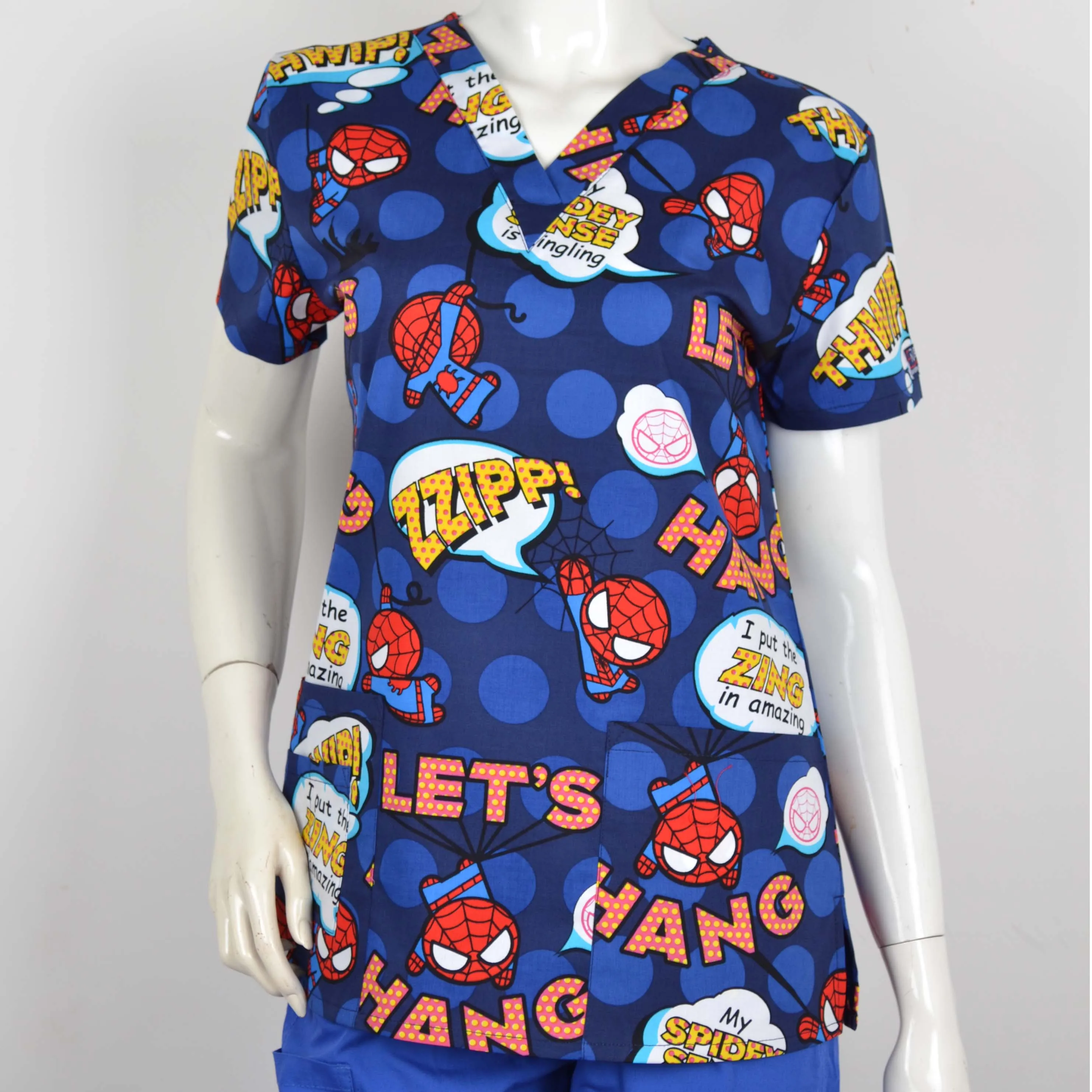 Big sale Hennar Women Scrub Top With V-Neck 100% Cotton Print Surgical Medical Uniforms Hospital Nurse Scrub Tops For Women