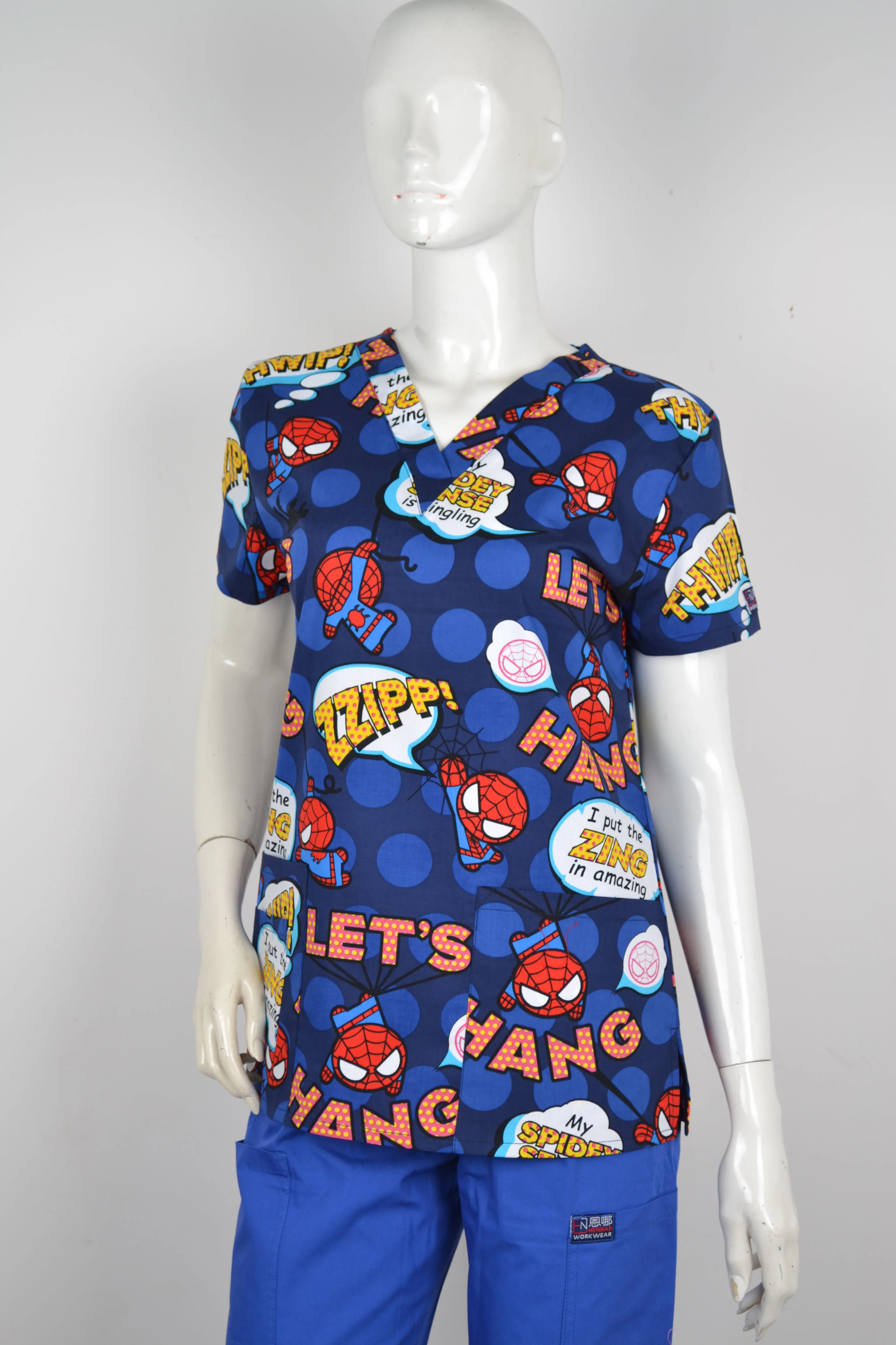 Brand medical scrub tops for women surgical scrubs,scrub uniform in 100% print cotton maotou series