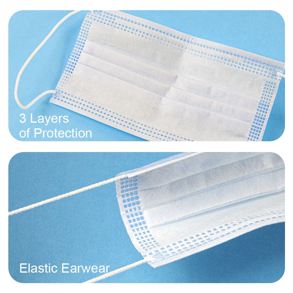 3-layer non-woven disposable mask is made of 3-layer non-woven material, it is safe and safe for your use. Breathable material and cute patterns, which makes it useful and fashionable. Special 3-layer non-woven design, provides some protection against dust, car exhaust, pollen, etc. Elastic Ear loop, easy to wear and does not put pressure on ears. Ideal for a nail salon or any other area where protection may be required, such as an airplane, etc.