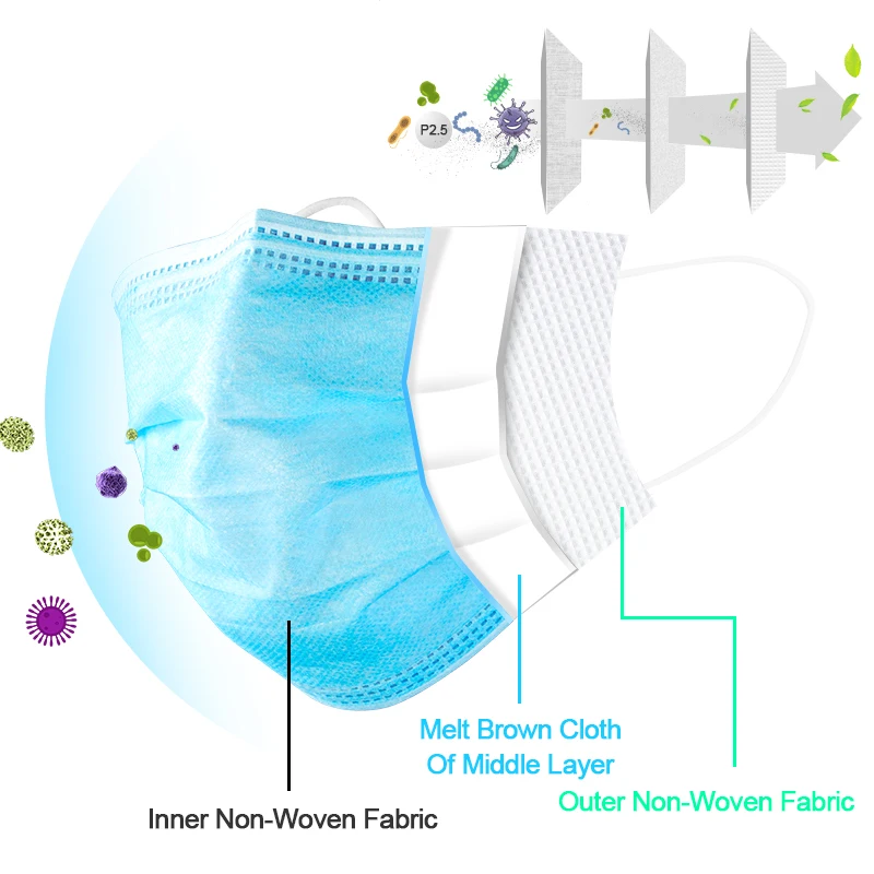 100Pcs/Lot Disposable Masks 3-layer Non-Woven Masks ffp3 ffp2 Anti Dust Mouth Face Mask Protection Soft Protective Mask