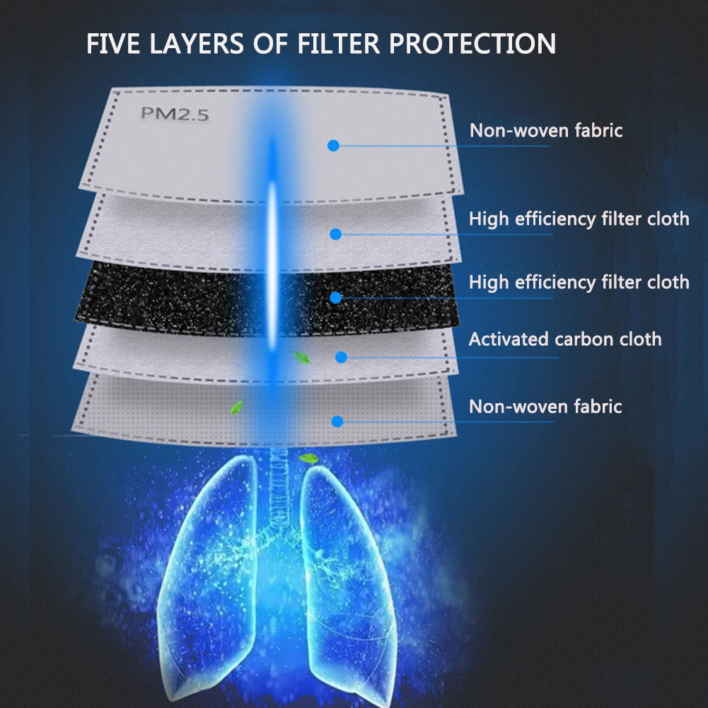 2 Pcs 5 Layer Mask Replacement Filters Activated Carbon Filter for Mount Mask Anti-dust PM2.5 Filter