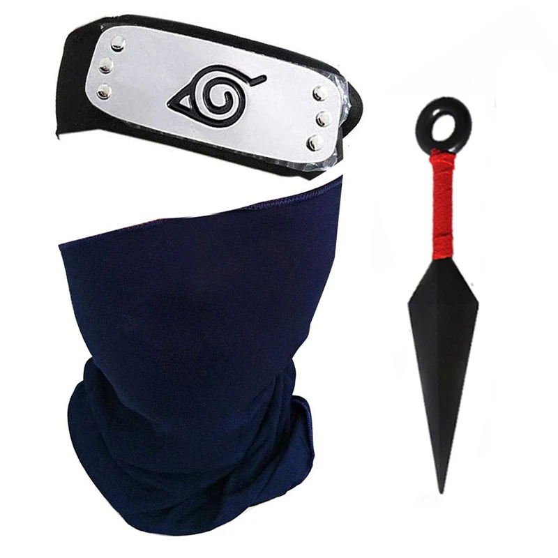 | Naruto Hatake Kakashi Cosplay Mask Headband Kunai Outfit Konohagakurenosato Anime Masks Props Accessory |