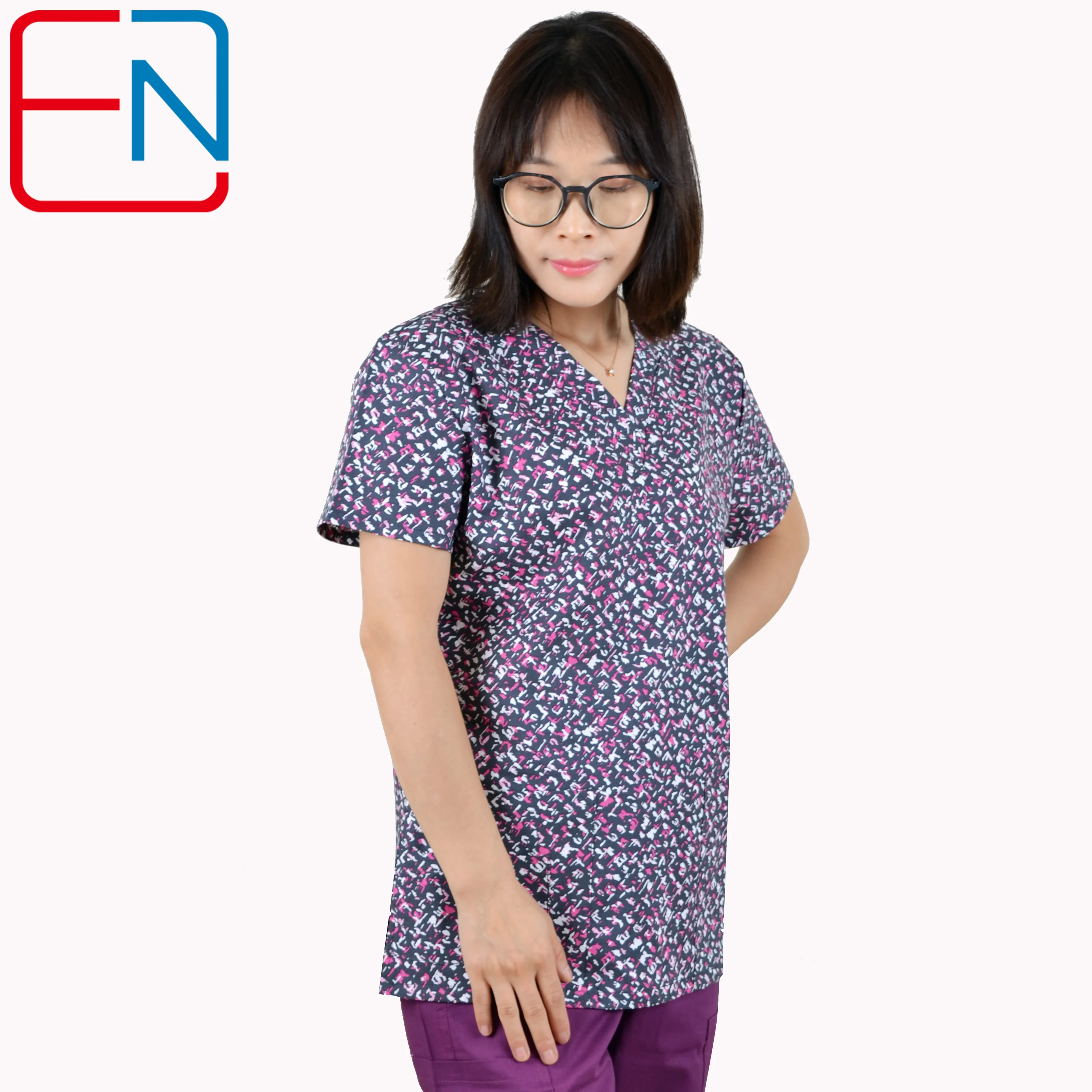 Brand medical scrub tops for women surgical scrubs,scrub uniform in 100% print cotton