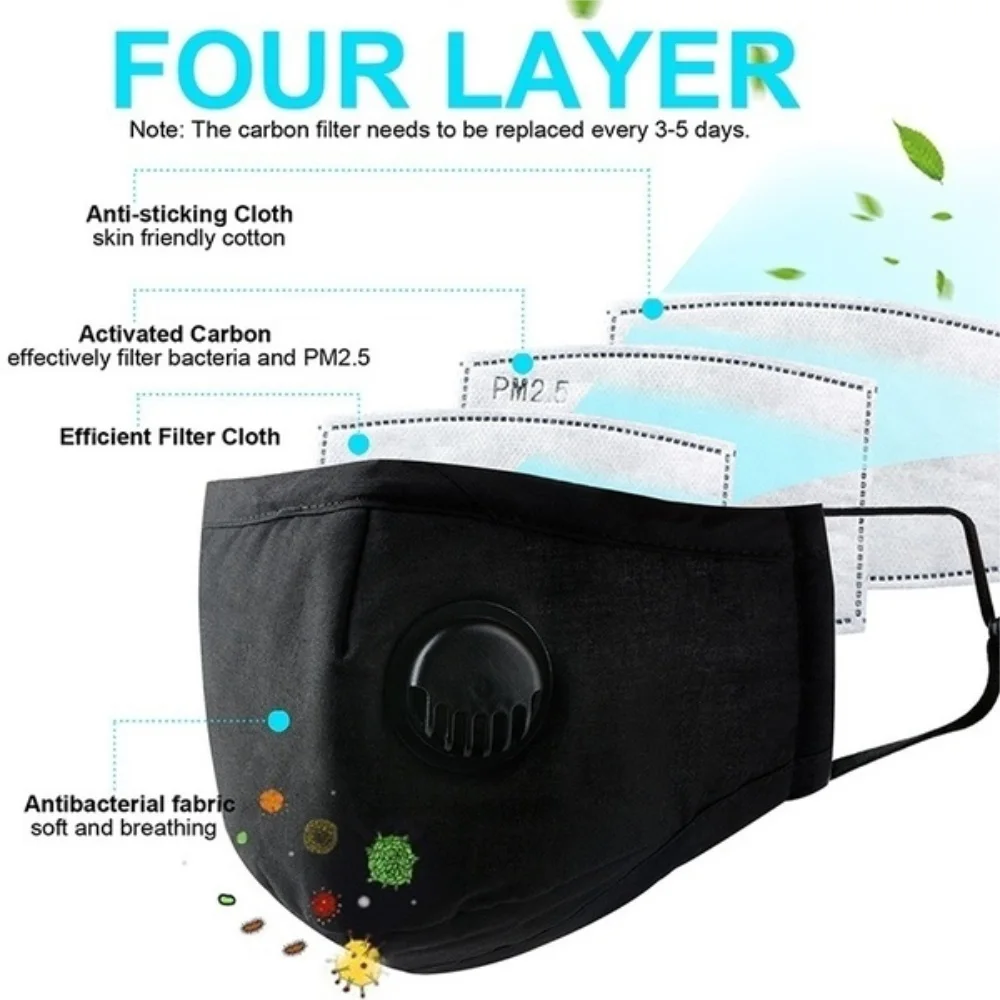 | Reusable Breathable Pm2.5 Protection Face Masks Mask Filtration Respirator Dustproof Anti-Fog Antibacterial Filter |