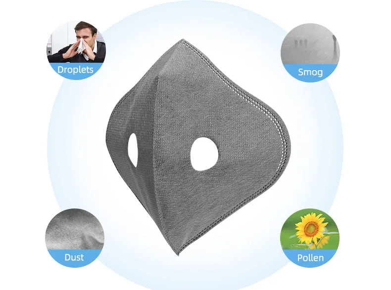 Item Name:Activated Carbon MaskSize : One sizeFabric:Mesh / Diving FabricFeatures :1. Prevent droplets and smog2. Security,Breathable,Blocking droplets,Dust-proof,Stretch fabric,Fit the face3. Breathing valves4. With filter - 5 layers of protection5. Mounting ear design6. High elastic fabric7. Multipurpose - cycling,running,Travel