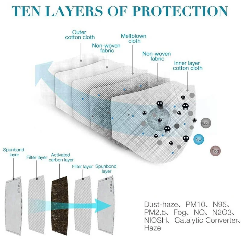 | 20PCS Filters Respirator Washable Reusable Dust Mask Fashion Anti Pollution PM 2.5 Mouth Masks Cotton Unisex Muffle for Allergy |
