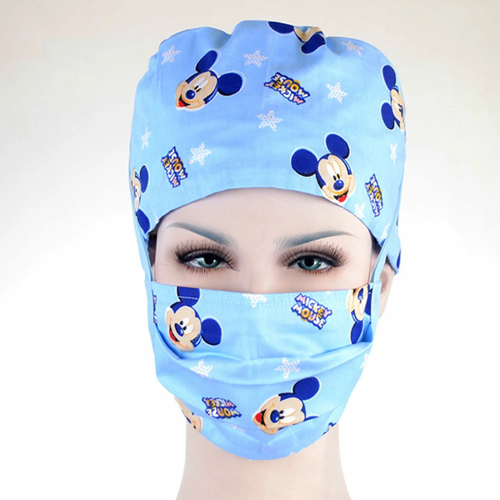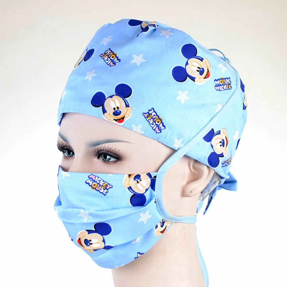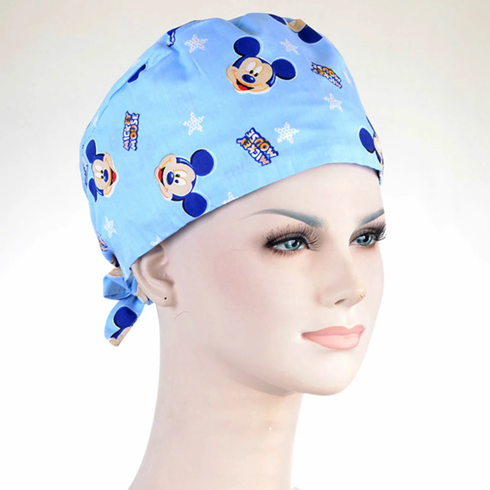 | Cartoon Printed Doctor Nurse Work Caps Adjustable Dentist Medical Accessories Surgical Cap Medicine Facial Scrub Hats |