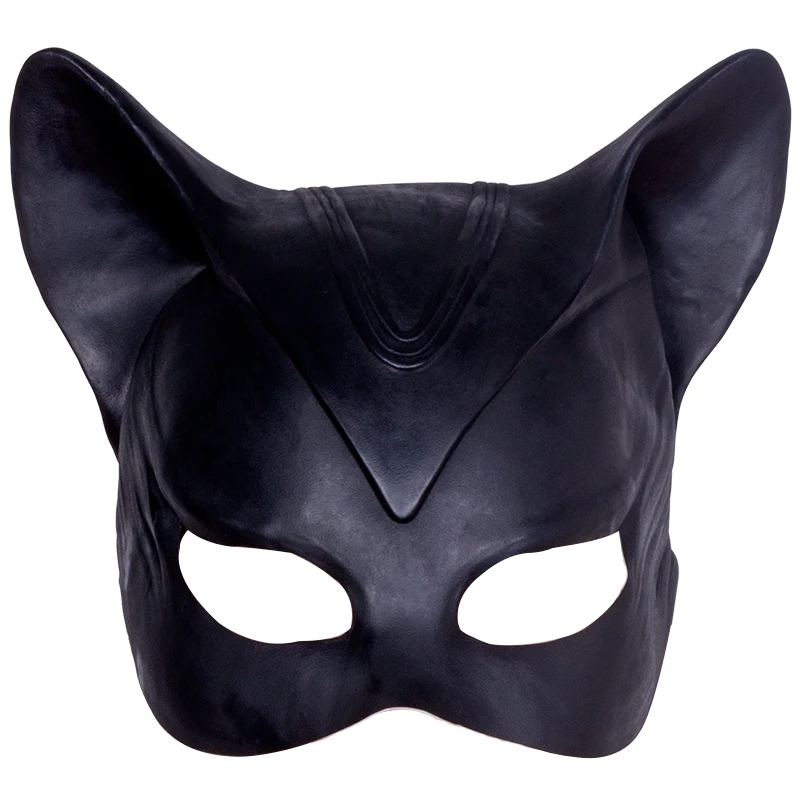 Sexy Catwoman Mask Cosplay Costume Sexy Lingerie Nightclub Catwoman Black PVC Cat Women Leather Look Head Mask Costume