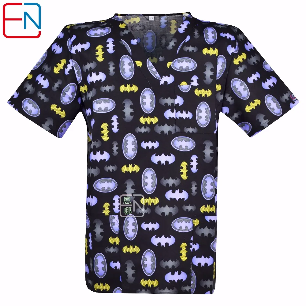 Cotton medical uniforms printed nurse uniforms women's scrub top v neck shirt surgical doctor clothing workwear nurse uniform
