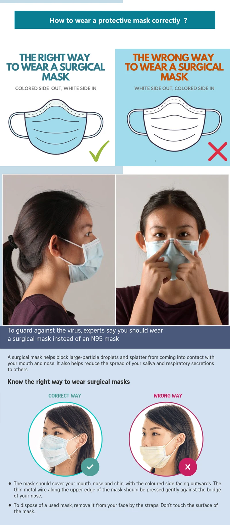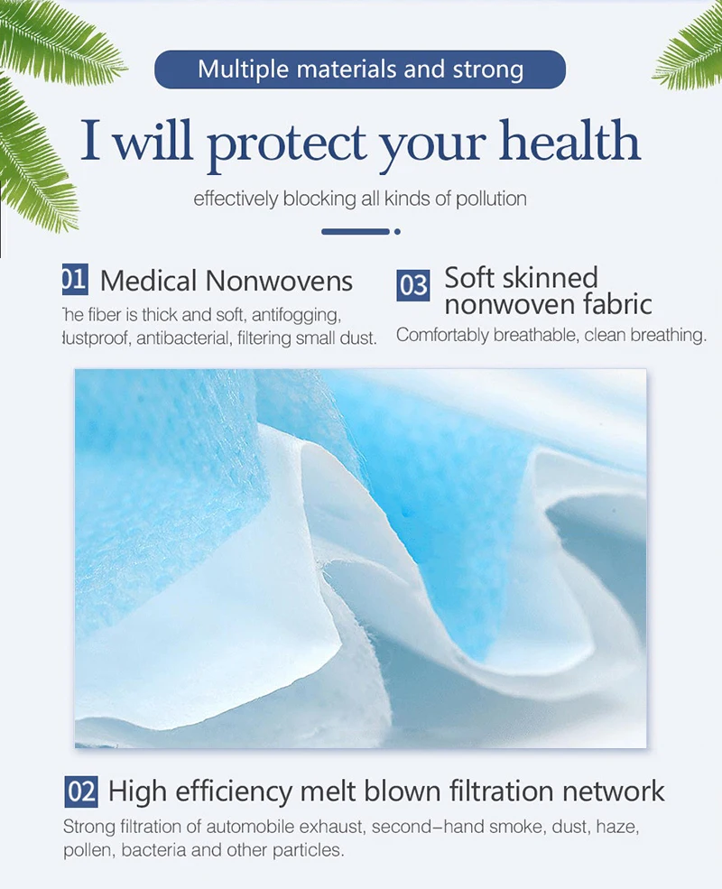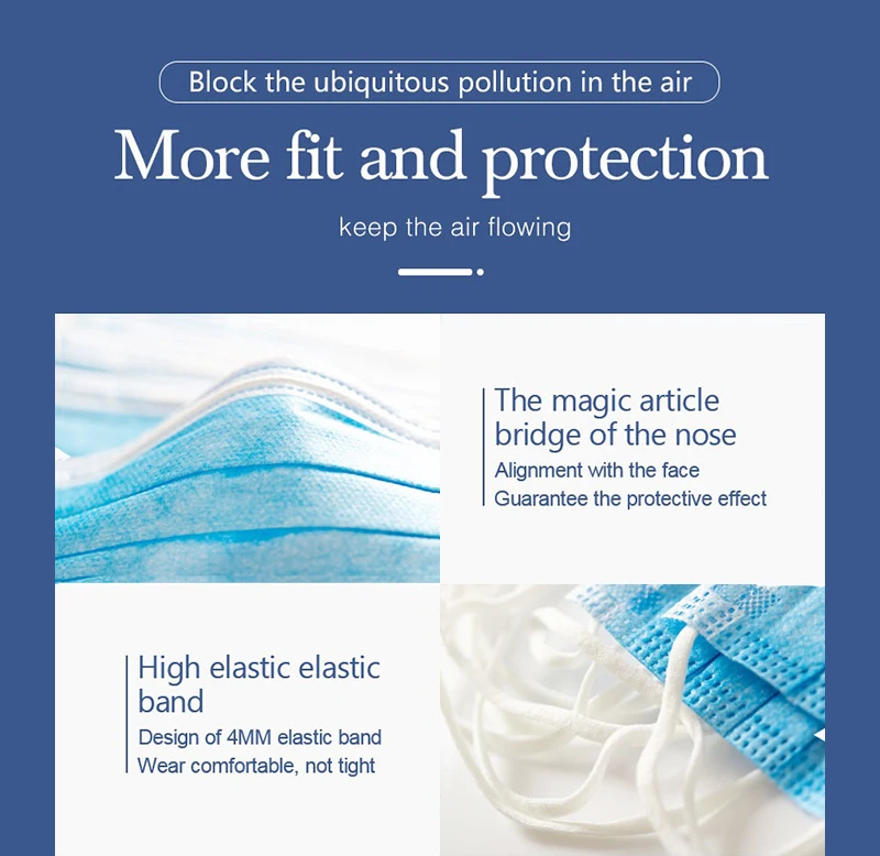 Note: Only masks that are truly waterproof can effectively block droplets and block virus transmission.1. Breathable,anti dust.Three layer folding, form a 360-degree three dimensional breathing space.2. High flat, high elastic ear hooks for lower pressure.3. With a concealed plastic nose, anti fog, built in hidden cartilage bridge, can be adjusted to avoid voids and reduce the inhalation of harmful substances.Cover the nose and mouth and hang the ear straps on both sides of the mask on the ear;Fix the bridge of the nose in a nose to prevent dirty air from entering;Pull the mask to the lower jaw to create a three-dimensional breathing space.