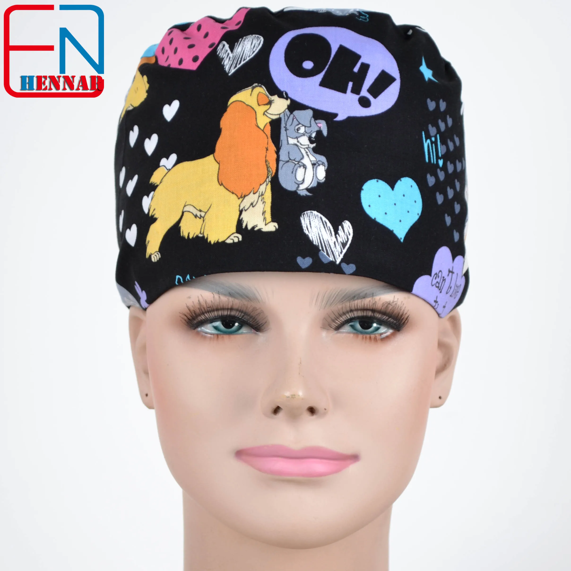 New Surgical Caps Medical Newly Surgical Scrub Caps Mask For Men Women With Sweatband 100% Cotton Medical Caps Printed Unisex