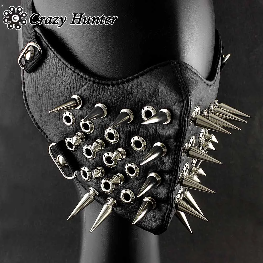 | Cool Mens Long Spike Studded Steampunk Leather Mask Biker Rock |