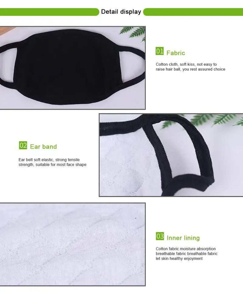 Reusable Cotton Anti-Dust Mouth Face Mask Black Cover Mouth Respirator Cycling