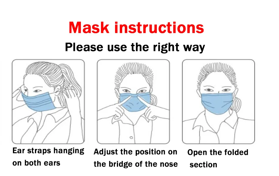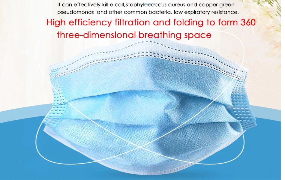 Description: The 3 ply non-woven disposable mask is made of 3 ply non-woven material, it is healthy and safe for you to use. Breathable material and cute patterns, which makes it useful and fashionable. Special 3 ply non-woven design, provides some protections against dust, automobile exhaust, pollen, etc. Elastic ear loop, easy to wear and no pressure to the ears. Perfect for medical, nail salon or any other areas where protection might be required, such as hospital, airplane, etc. Features: 1. Made of environmental friendly material, moisture-proof, non-toxic, non-irritating, soft and comfortable.2. Breathable material and cute patterns, which makes it useful and fashionable.3. Special 3 ply non-woven design, provides protections against dust, automobile exhaust, pollen, etc.4. Perfect design, when you wear it , it fits seamlessly into your face. Elastic ear loop is easy to wear and no pressure to the ears.5. Perfect, nail salon or any other areas where protection might be required, such as airplane, etc.Disposable Mask Anti Pollution Mask Unisex Protection Fabric Dust Mouth MaskSafe protection against viruses, allergies, contaminants, bacteria, dust etc. Feature:l 100% brand new and high quality.l Protection: Three layers of purifying dust, toxic gases in the air,and skin-friendly filter cloth,giving you multiple protections,protects against dust, allergens and contaminants.l Color: Bluel Packing: boxedl Type: Disposable maskl Quality: Our masks are made of soft, high-quality cotton and individually packaged and sealed to ensure the highest standards Please be kindly noted,the listed product is produced and distributed abroad and subject to the laws of its country of origin.