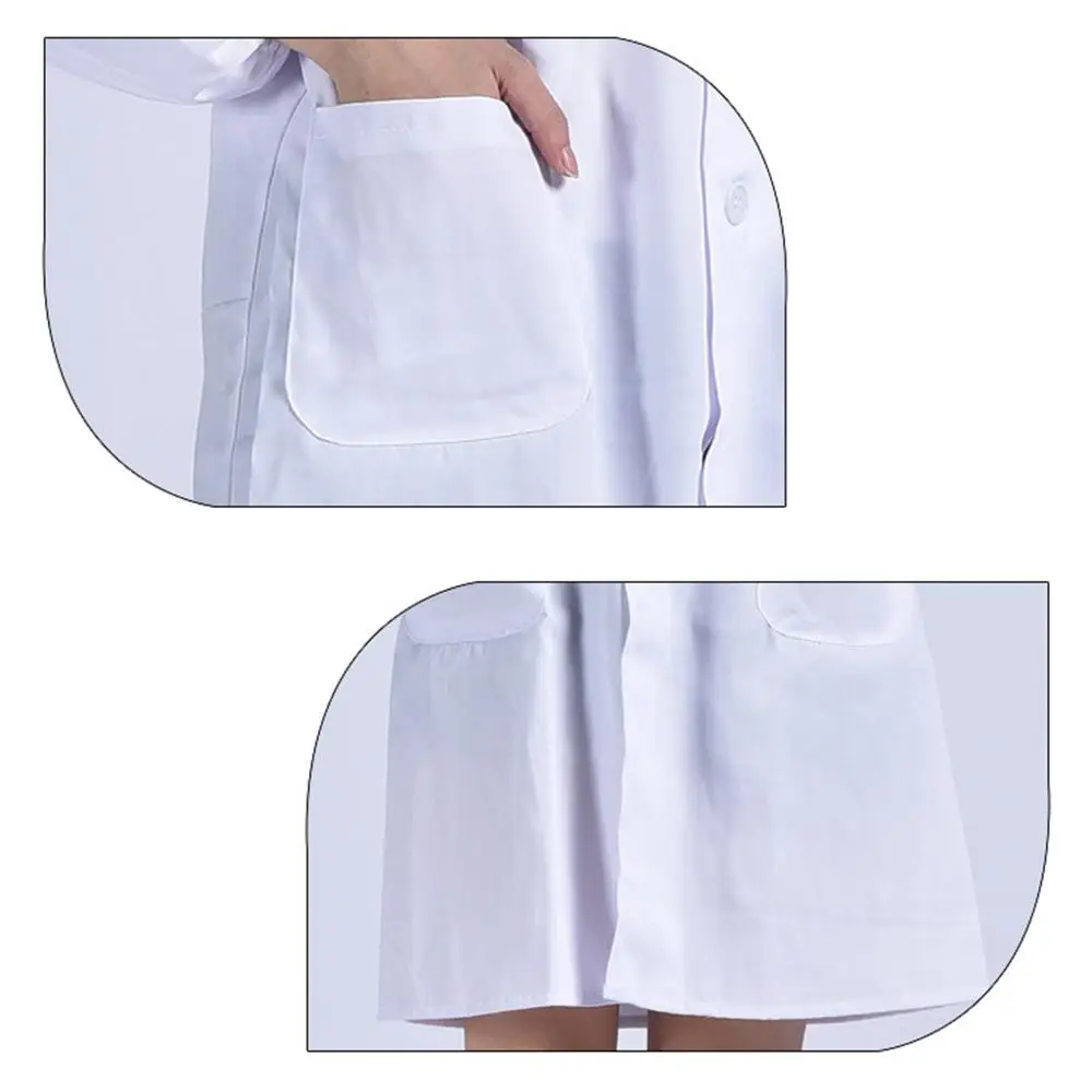 Unisex Long Sleeve White Lab Coat Men Women Lapel Collar Button Down Medical Doctor Blouse with Pockets Doctor Nurse Uniform