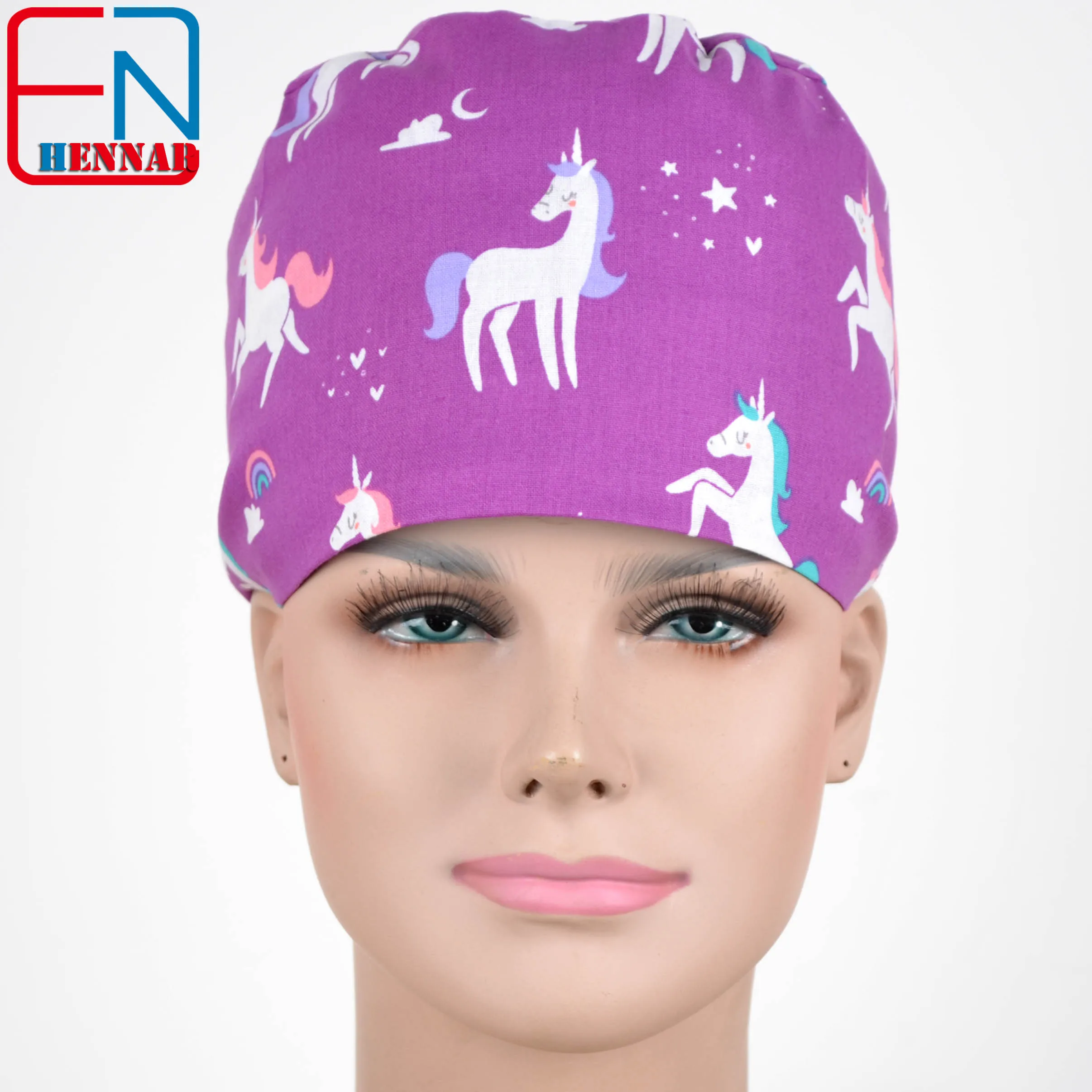 Hennar wome Cotton Scrub Caps in light blue 100% cotton Hospital Medical Hats Print Unisex Surgical Caps Mask