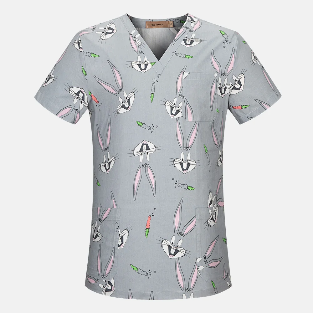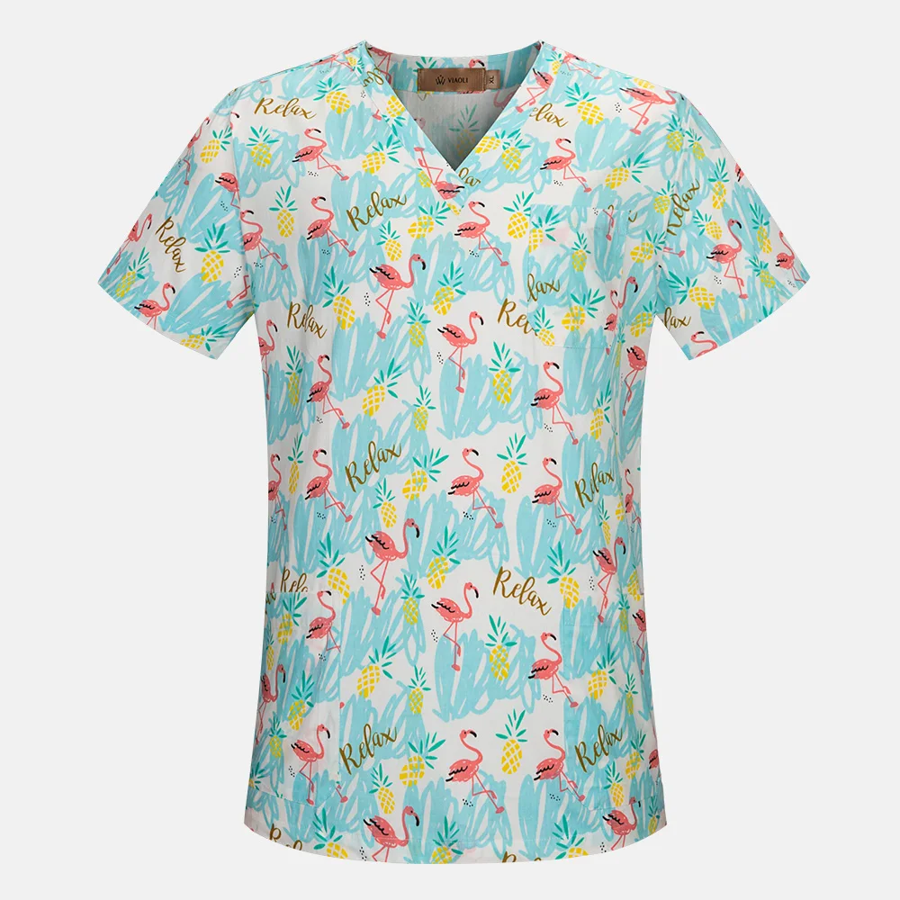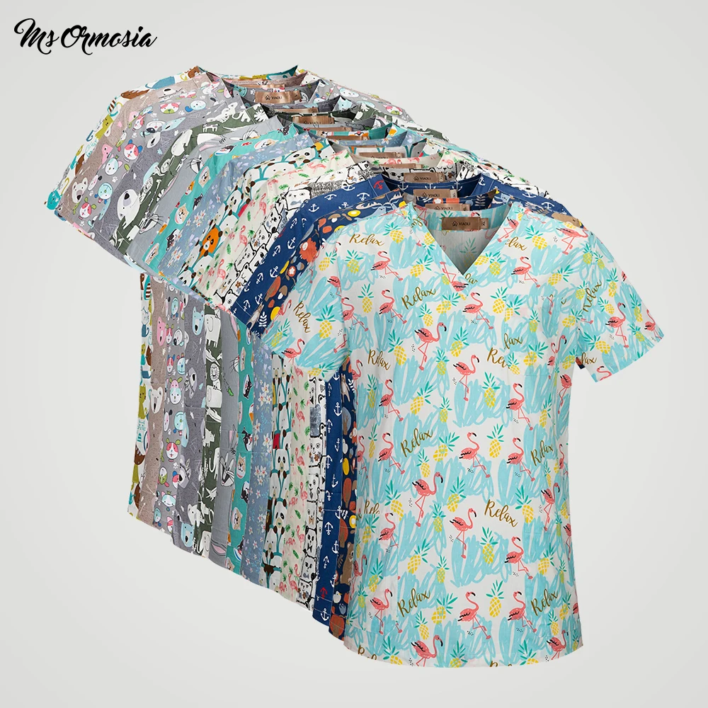 100% cotton medical uniforms printed nurse uniforms women's scrub top v neck shirt surgical doctor clothing workwear medical top