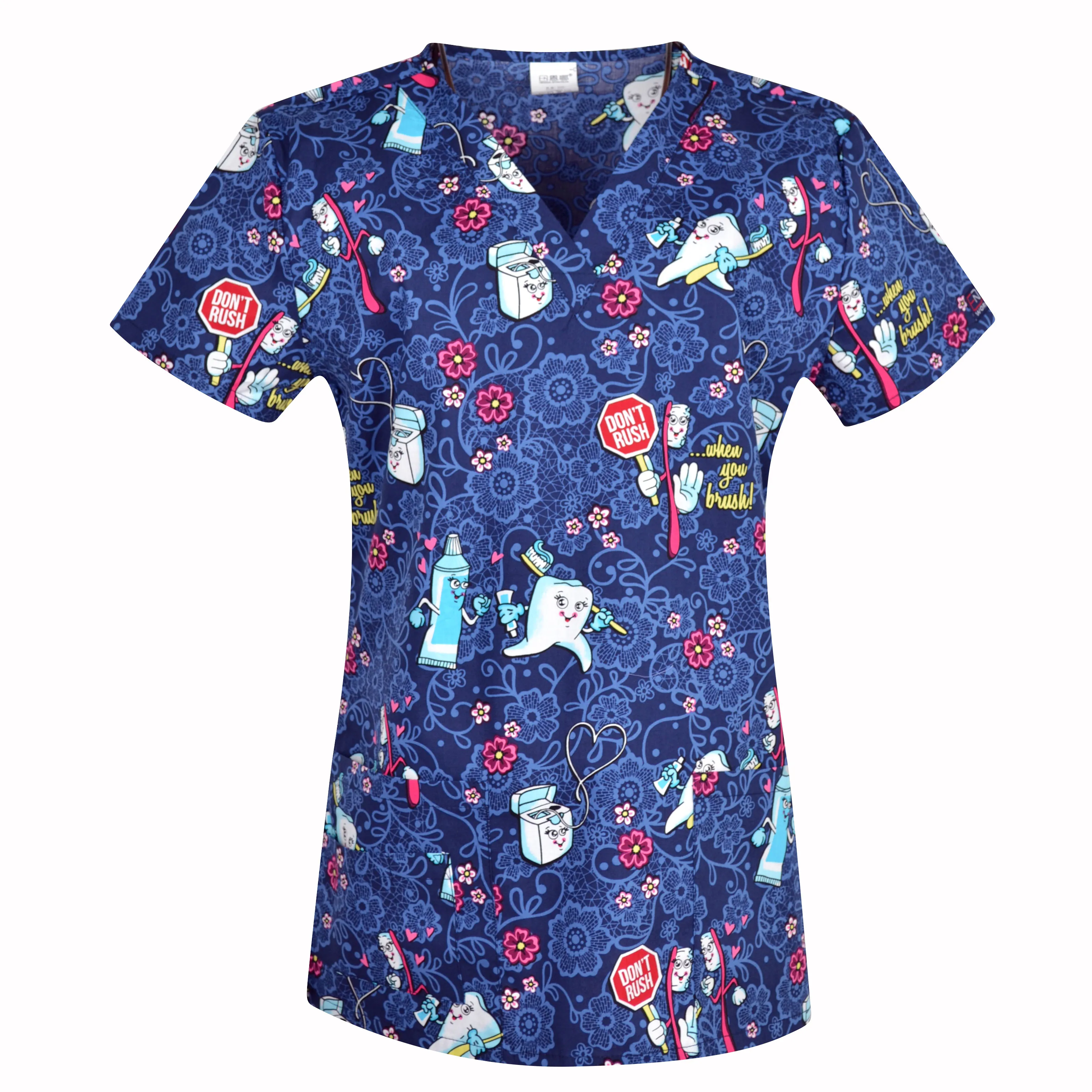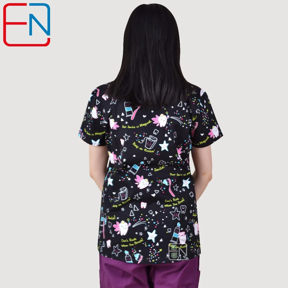 TC Lovely Print Medical Uniforms Women Breathable V-Neck Nurse Nursing Uniform Hospital Clinical Dental Doctor Scrub Top